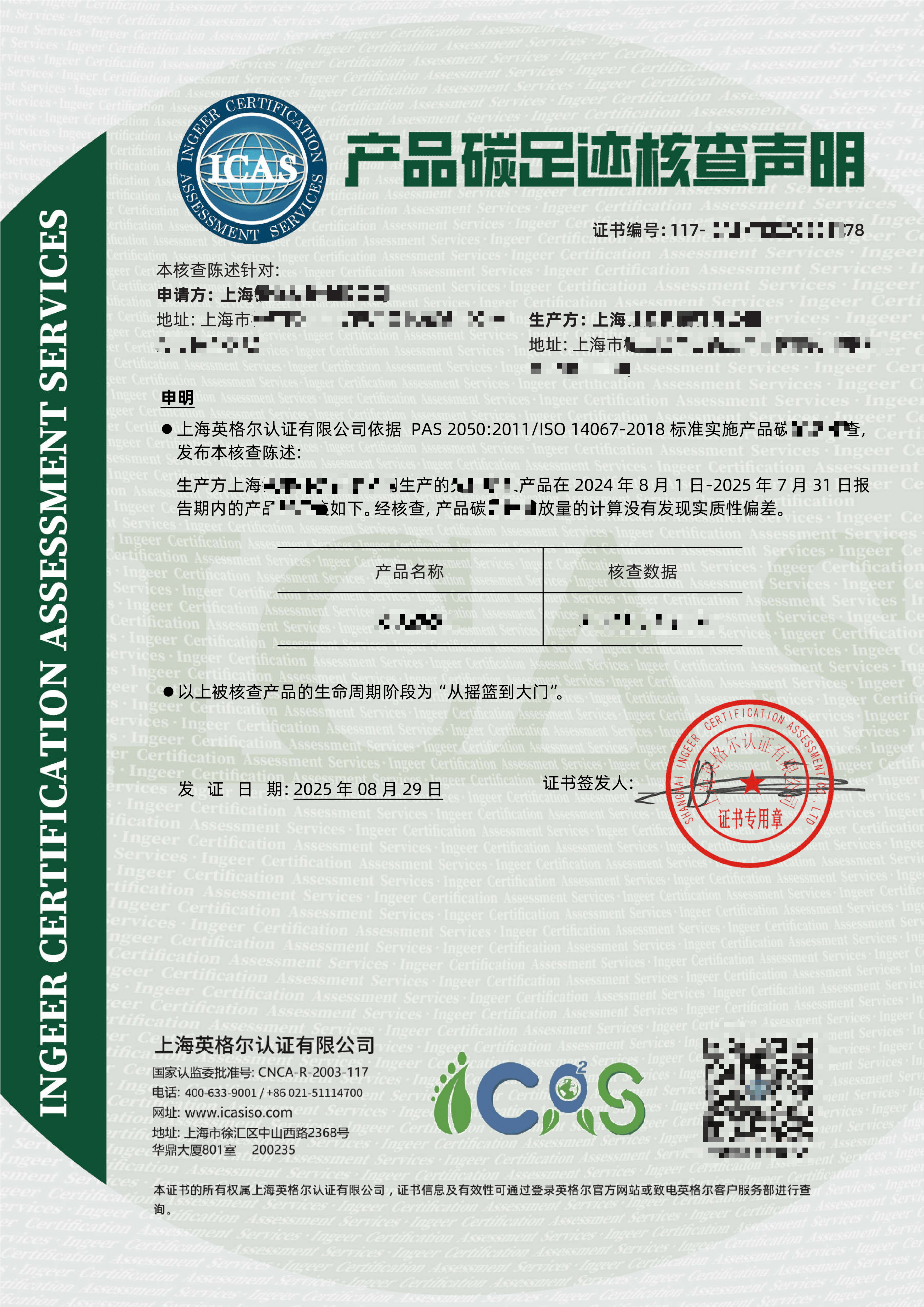 通过三年持续合作,ICAS英格尔认证为上海银浆提供的碳足迹报告精准响应了下游客户的低碳要求,帮助其在供应链竞争中保持优势,成为低碳合规的可靠合作伙伴。