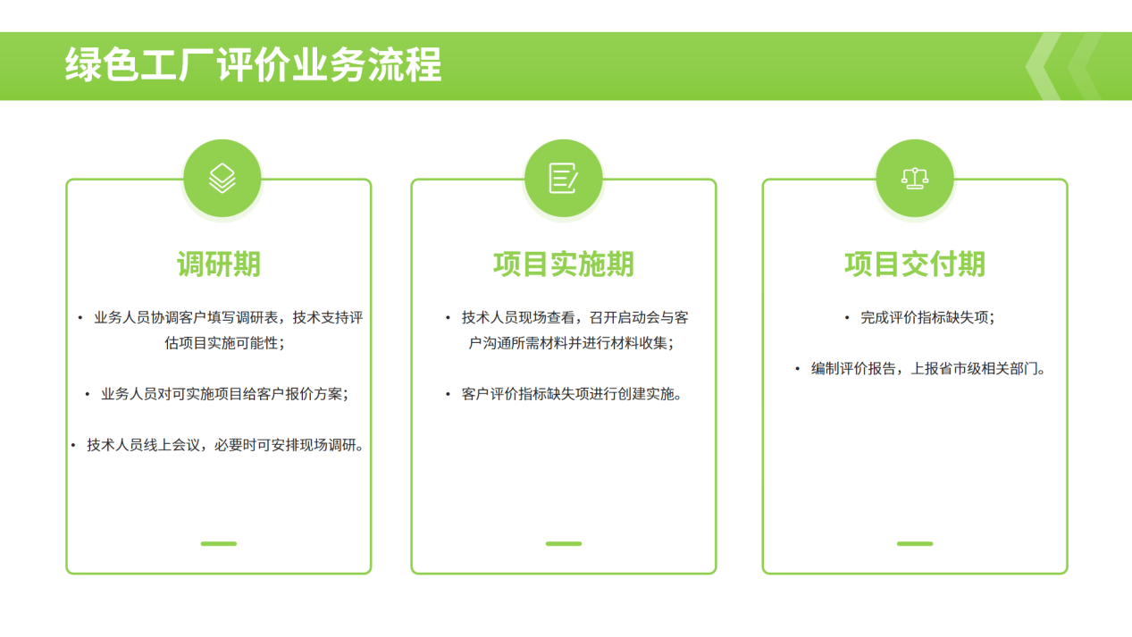 ICAS英格尔认证是国家绿色制造公共服务平台备案企业,也是上海、常州、江苏等地省级绿色低碳服务机构,凭借专业的绿色低碳服务能力和优势,可为企业提供符合国家标准的绿色工厂评价服务,服务流程分为三个阶段:调研期、项目实施期和项目交付期,确保了评价工作的系统化和科学性。