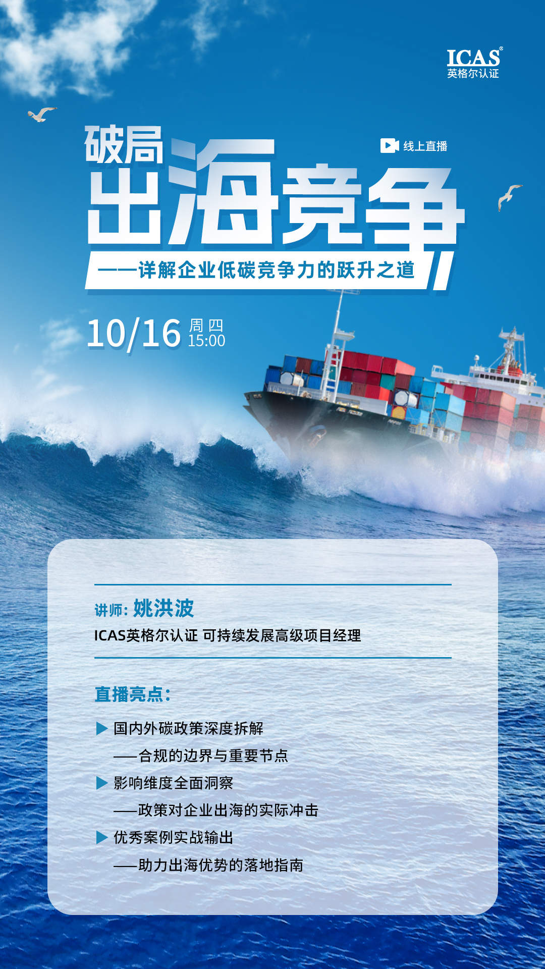 应当如何洞察不同经济体的政策动向?又该如何构建自身的低碳竞争力,将挑战转化为机遇?本次ICAS英格尔认证专家直播将直击具体问题,通过对国内外碳排放政策、对企业的影响的全面剖析,并结合优质案例,为企业提供清晰可落地的行动方案。