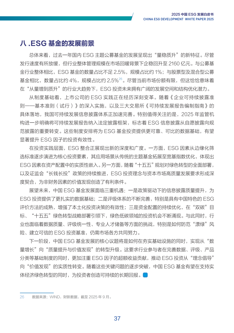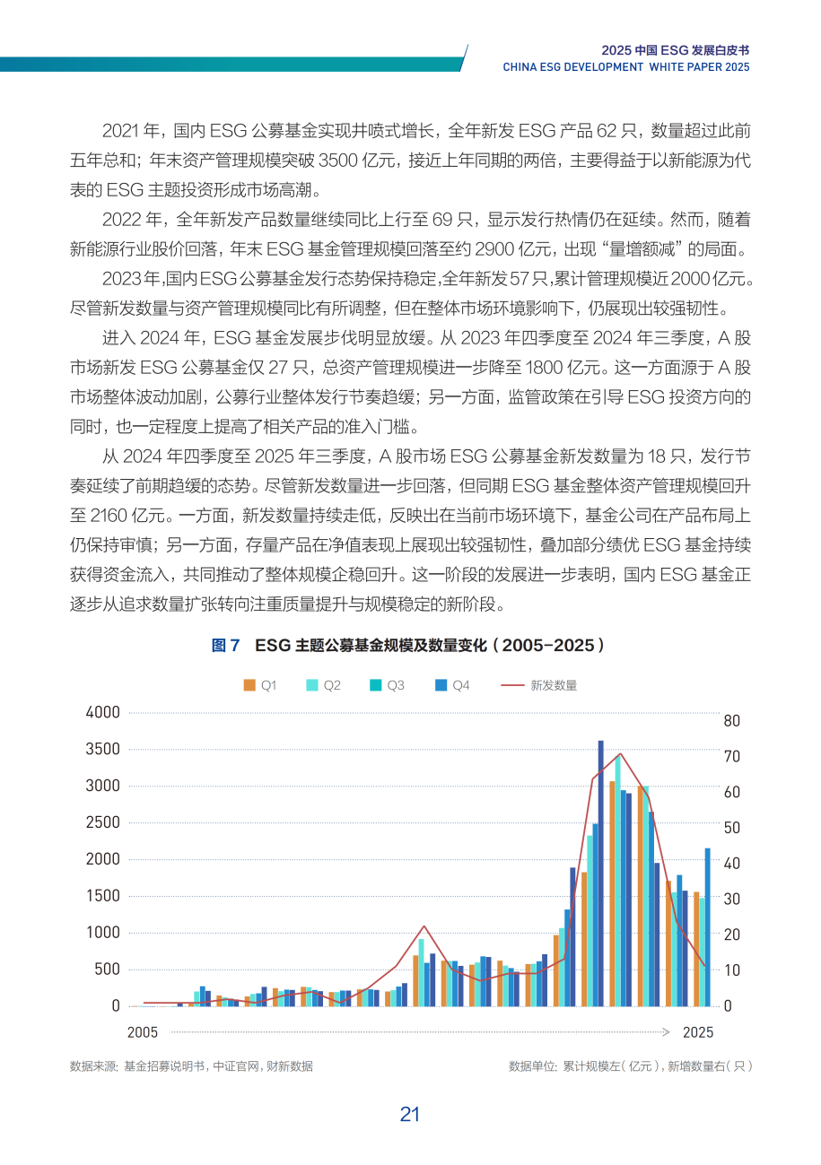 2025年,中国ESG投资生态呈现出从数量扩张向质量提升的结构性转变。尽管新发ESG基金数量增速有所放缓,但行业整体资产管理规模逆势回升至2160亿元,反映出市场对ESG投资信心的恢复与深化。