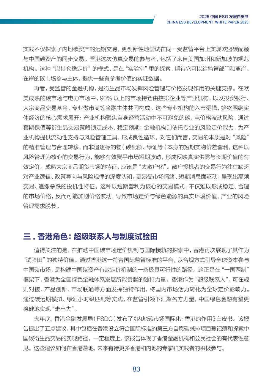 与此同时,香港在推动中国碳市场定价机制与国际接轨方面发挥试验田作用,通过碳远期模拟交易等创新实践,探索中国碳资产有效定价路径。